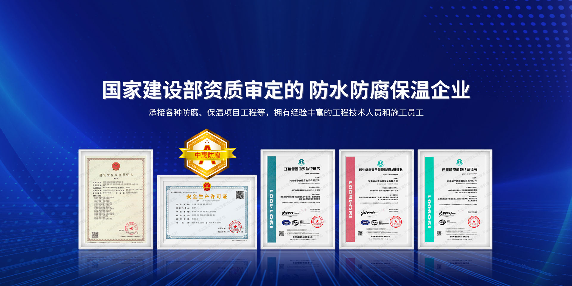 公司經營范圍:防水防腐保溫工程;消防設施工程;建筑裝修裝飾工程;建筑機電安裝工程;電力工程;建筑工程;石油化工工程;工業清洗工程;油罐清洗工程;鋼結構工程;環保工程;模板腳手架工程;電纜防火封堵、防污閃噴涂、外墻外保溫工程;各類施工勞務作業;設備維修、船舶鉚焊、涂裝;電力工程材料、建材、防水材料、防火材料、防腐保溫材料銷售,并相繼通過了GB/T19001-2008idtISO9001:2008GB/T50430-2007質量管理體系認證證書。GB/T24001-2004idtISO14001:2004環境管理體系認證證書。GB/T28001-2011idtOHSAS18001:2007職業健康安全管理體系認證證書。公司是中國防腐蝕于防護協會、中國施工企業管理協會、電力協會和中國鋼結構防水協會會員單位。 公司的經營業務涵蓋了石油、化工、電力、冶金、煤炭、船舶、國防、燃氣、水利、環保、交通運輸、航空及國防軍工和輕紡市政等行業的防腐保溫絕熱設備。鋼結構安裝、防火、防水、金屬噴鍍、聚脲噴繪、陰極保護、防滲透堵漏、玻璃鋼及各種磚版材料襯里、橡膠襯里、煙氣硫和耐酸溶劑腐蝕等工程施工。公司連續十年榮獲“省市先進施工企業”“安全生產先進單位”“重合同,守信用企業”和“AA***資質企業”的稱號。2000年被命名為市級文明單位,2002年被國家工商行政管理局命名為“重合同,守信用的企業”、被中國工業防腐蝕技術協會命名為“防腐蝕企業,能源節約及環境保護領域有豐富的經驗和***的業績。工程一次交驗合格率100%。其中攀枝花鋼鐵公司煉鐵廠四號高爐及熱風爐防腐工程、上海寶鋼公司煤氣柜防腐工程、撫順石油一廠裝置防腐項目、齊魯石化公司稀烴廠高塔防腐工程、吉林化學工業公司煉油廠油罐防腐工程、天津石化熱電廠六號爐頂棚聯絡管保溫工程、大慶油田(太倉)力神泵業工程、中國化學工程第十一建設工程、中原油田勘探局工程、中國石化銷售有限公司華北分部、魯皖輸油管道工程、貴州開磷息烽合成氨工程、陜西黃陵煤化工程、中國石油天然氣西部管道塔里木輸油工程、邯鋼集團邯寶鋼鐵公司煉鐵工程、德州供電工程、吉寶(南通)船廠工程,偃師華潤熱力工程、鄭州熱力總公司。 河南省中惠防腐安裝有限公司愿以豐富的施工經驗,***的技術,***的設備,***的管理,***的服務,竭誠為國內外廣大的用戶提供***滿意、******的工程作品。 我公司愿與國內外同仁一道,團結協作,共同推進防腐蝕行業發展! 公司地址:河南省長垣縣建設路北段360號 固定電話:0373-8866488 郵編:453400 網址:http://www_zhff_com_cn.6174008.com